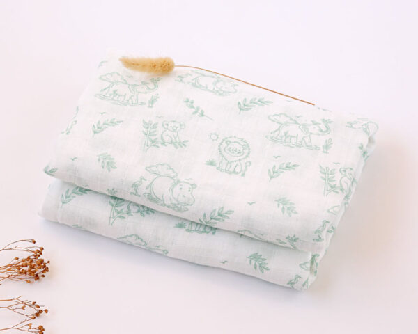 Muselina Bambú Estampado Animales Salvia Kiokids