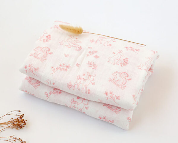 Muselina Bambú Estampado Animales Rosa Kiokids