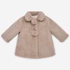 El abrigo esencial de pelo es una prenda suave y cálida, perfecta para mantener al bebé abrigado en los días fríos. Con pompones a tono que adornan el abrigo, añade un toque de diversión y elegancia al diseño. El cuello bebé le da un aire clásico y delicado, complementando su estilo sofisticado y atemporal.