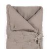 Saco arrullo o saco manta Caetana Sand con estrellas bordadas beige. Está fabricado con una suave muselina 100% algodón. Ideal para los primeros dias del bebé. Es perfecto para los primeros paseos en el capazo. Se convierte en una manta para la cuna. Practico cierre tipo sobre con velcros y cierre con cremallera en la parte inferior en los pies para que el bebé esté abrigado.
