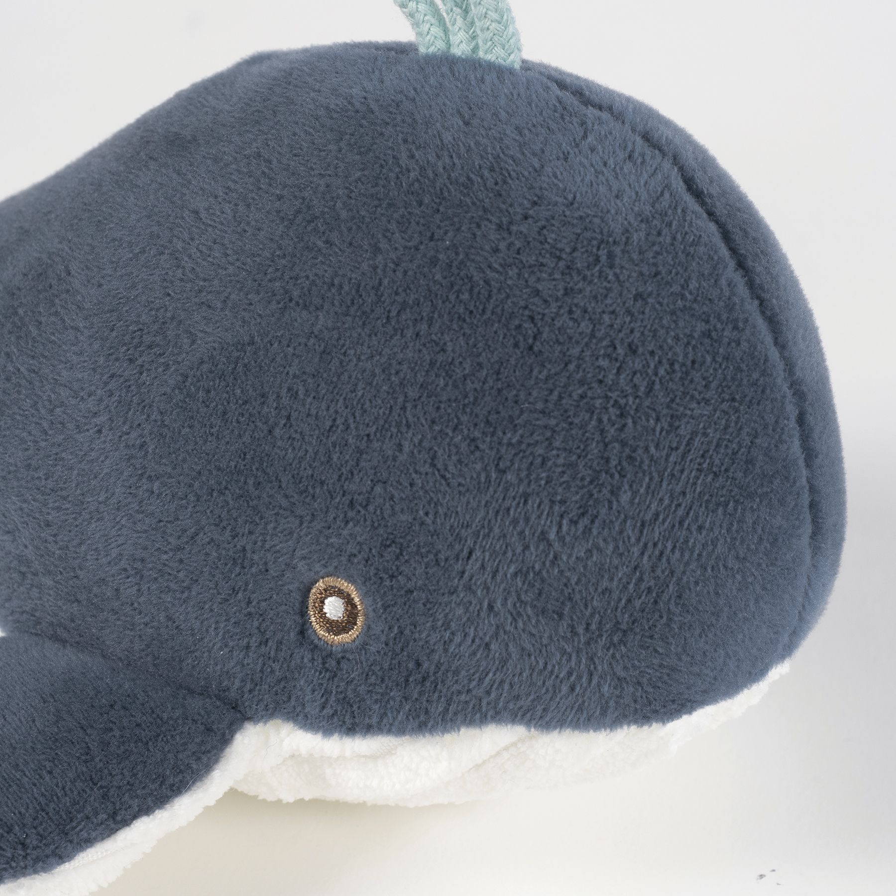 Muñeco Ballena Nico azul para el bebé. Muy suave y con una textura muy agradable. Sus ojos son bordados garantizando la seguridad de tu bebé.