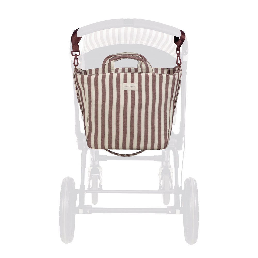 La bolsa para carrito de bebé o el bolso para silla de paseo Cherry Rayas de Pasito a pasito es un modelo único, elaborado en loneta de algodón 100% con un delicado estampado de flores. Su tratamiento waterproof la hace resistente al agua, garantizando protección y durabilidad en el día a día. Es un diseño muy elegante y práctico que ofrece gran capacidad para que puedas llevar de todo.