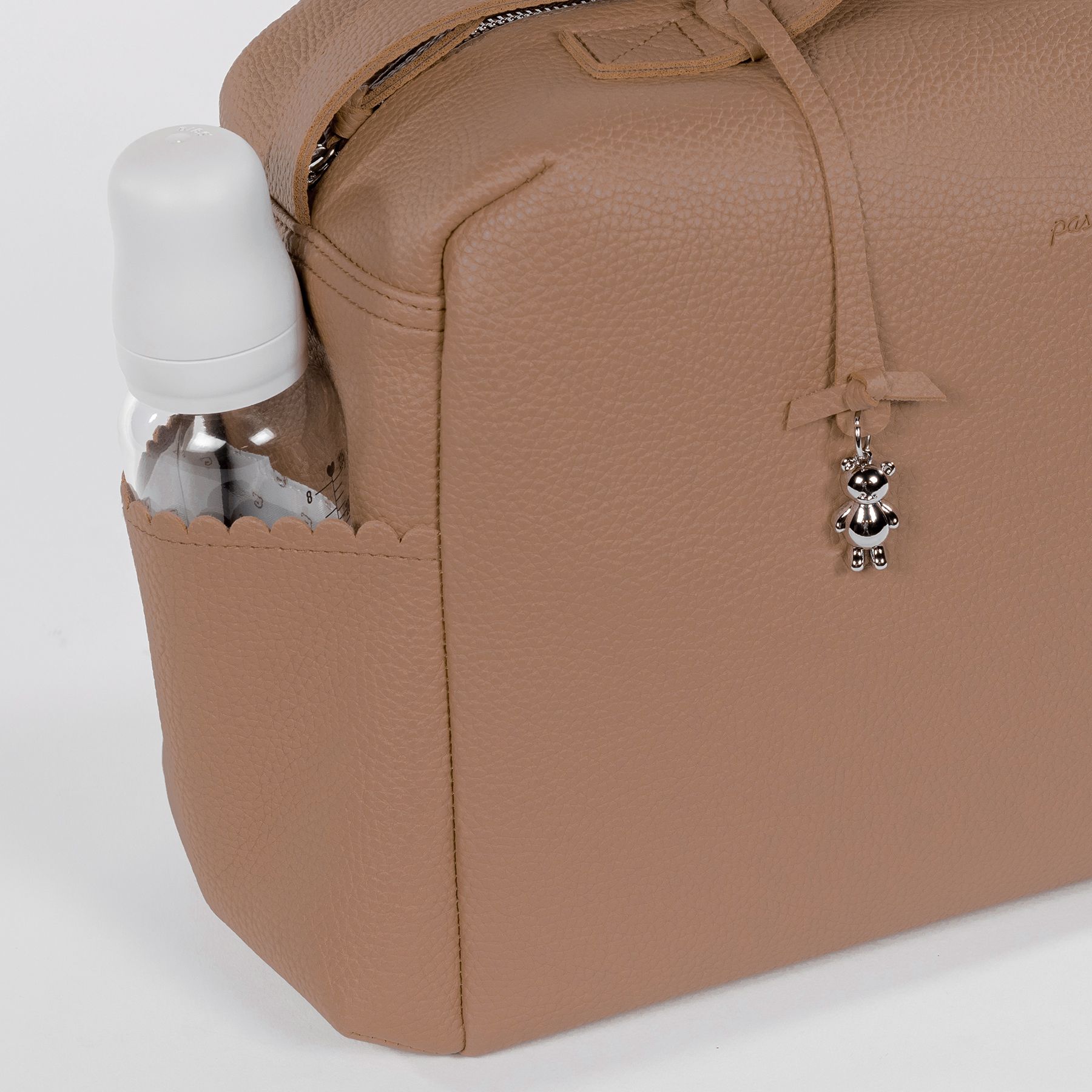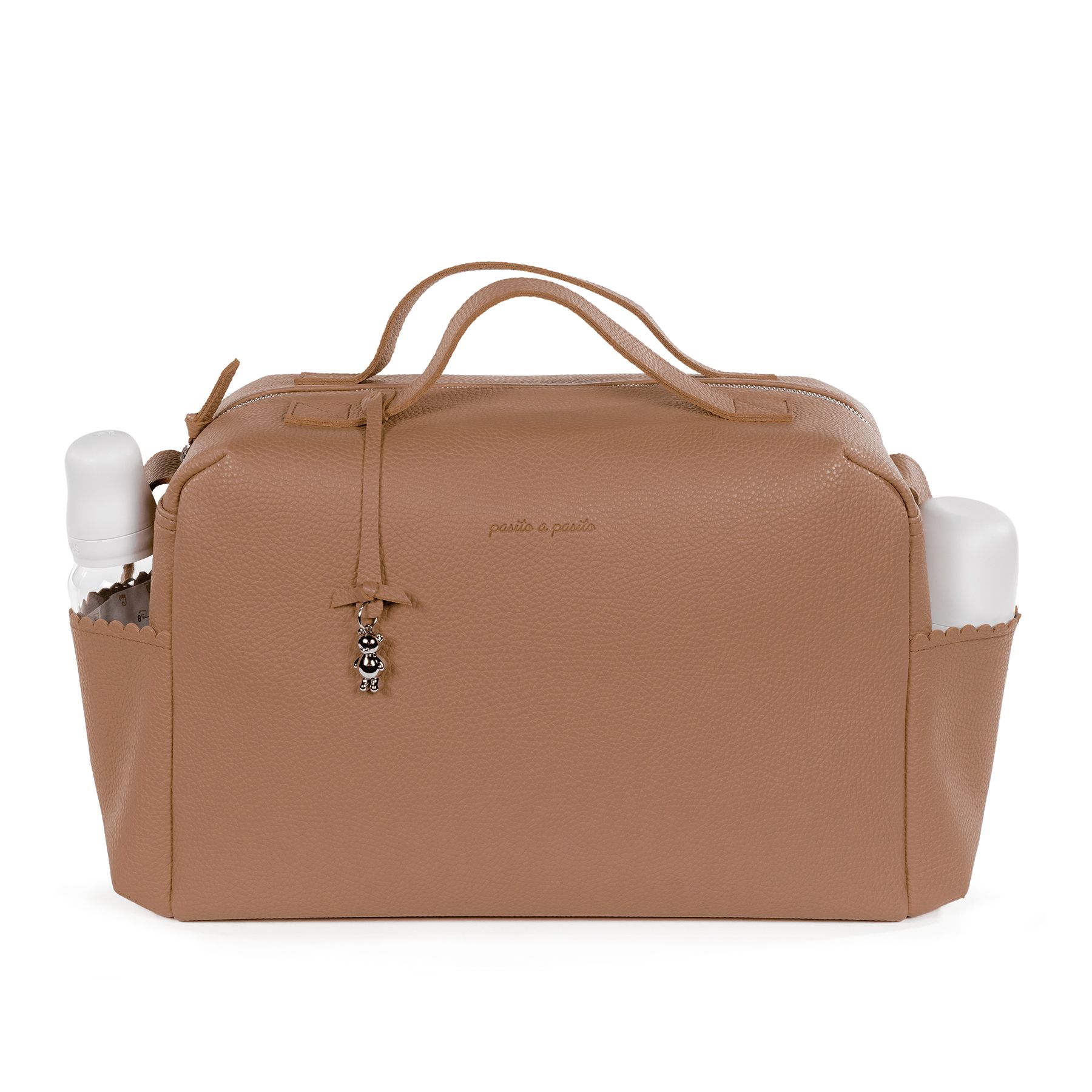 La bolsa para carrito de bebé o el bolso para silla de paseo Icon Caramel de Pasito a pasito es un modelo único, elaborado en resistente y delicada polipiel para llevar todo lo que necesita tu bebé al salir de casa. Es un diseño muy elegante y práctico que ofrece gran capacidad para que puedas llevar de todo. Viene acondicionado con doble asa, una larga para colgar en el hombro y unas cortas de mano. El asa larga incorpora broches metálicos a presión para poder colgarla al cochecito. Además puedes usarla para guardar tus cosas y así evitas llevar dos bolsas al mismo tiempo. Si estás en la dulce espera puedes tenerla preparada como bolsa del bebé para el hospital.
