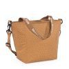 Bolsa térmica Poppy Canela con topitos canela. Mantiene la temperatura durante 4 horas. También incorpora una asa larga para poder colgarla en el hombro y asa corta de mano.
