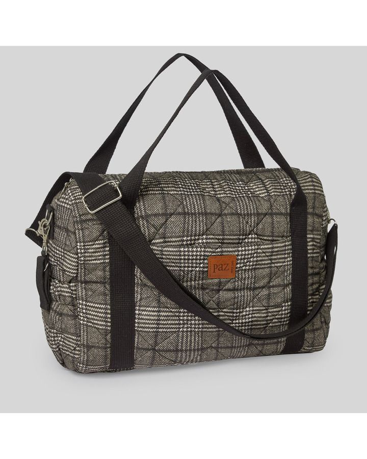 La Bolsa Bandolera de la colección Gales de Paz Rodríguez es una opción práctica y elegante para colgar en la silla del bebé. De tamaño medio y confeccionada en tejido acolchado con diseño de cuadros, esta bolsa ofrece estilo y funcionalidad. Cuenta con dos asas de mano y un asa larga ajustable para llevarla al hombro o colgarla en la silla. Su diseño es ideal para llevar lo necesario en los paseos, manteniendo un toque clásico y sofisticado que caracteriza a la colección Gales.