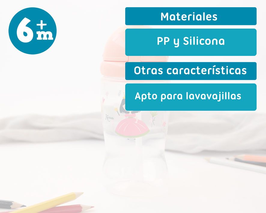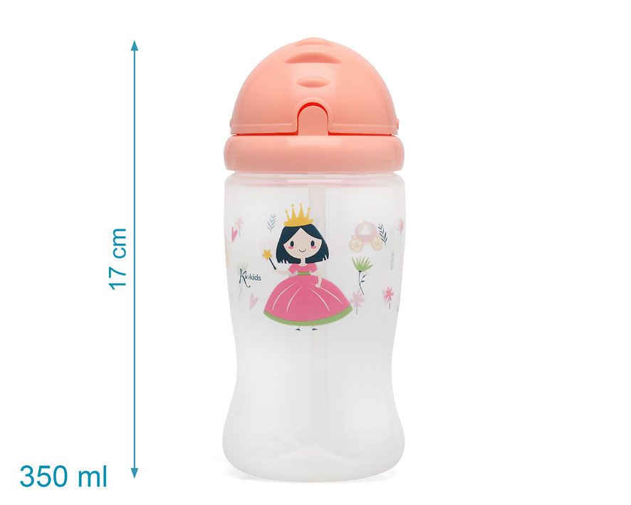 Botella Con Pajita 350ML Princesa Rosa Kiokids