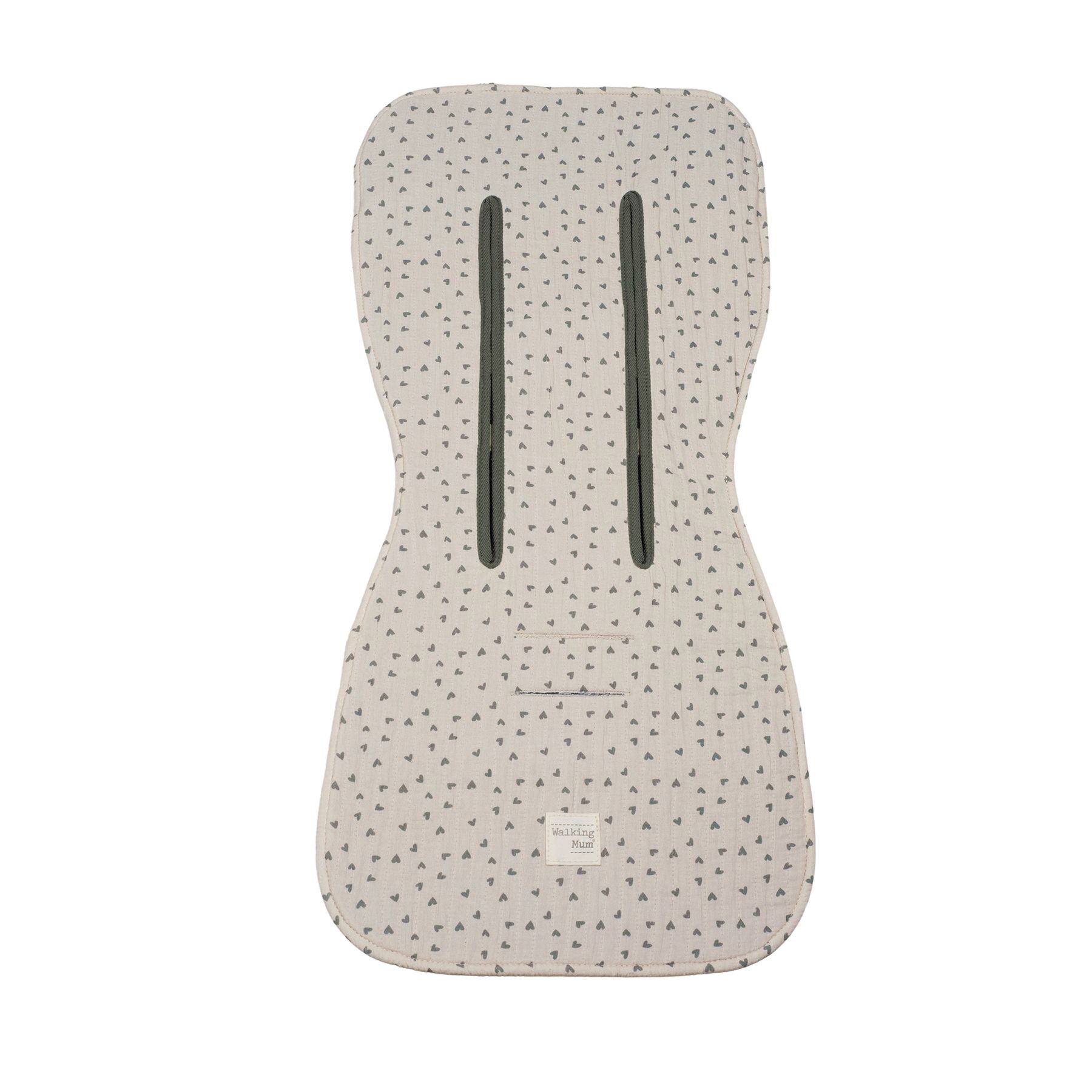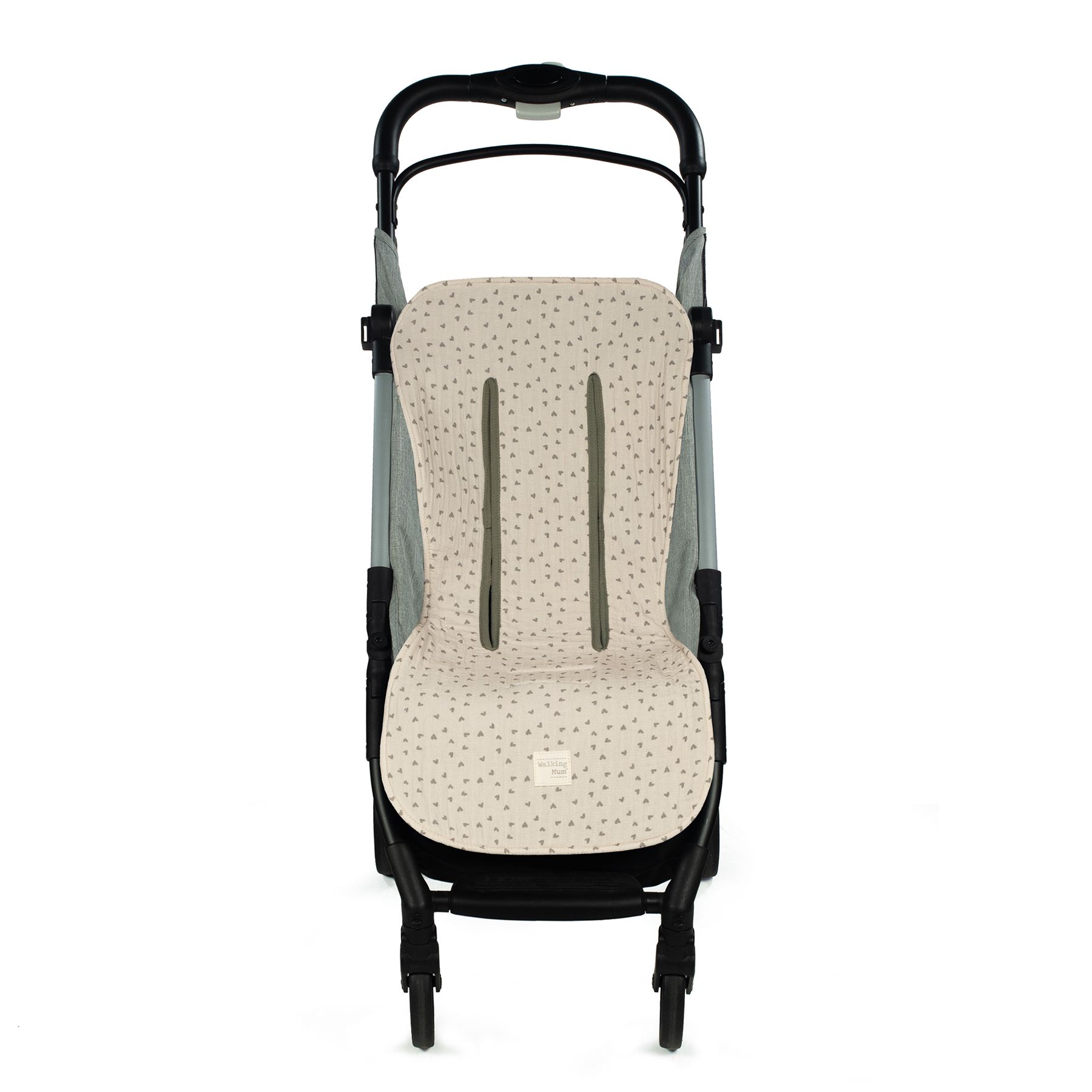 La colchoneta para silla de paseo Poppy Corazones Musgo está fabricado con un tejido exterior 100% algodón reciclado es el forro ideal para cubrir el asiento de tu bebé durante el verano, protegiendo su piel de las rozaduras e irritaciones del calor y además mantienes el tapizado original como nuevo. Está elaborada con un material transpirable que ayuda a prevenir la sudoración excesiva del bebé y protege la sillita haciendo el paseo más confortable.