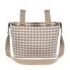 El bolso crossbody Caetana Sand de cuadros beige para silla de paseo es un modelo muy ligero además de ser resistente y espacioso para que puedas llevar todo lo que podrías necesitar durante el paseo de tu bebé. Incluye un charm en forma de estrella donde puedes bordar el nombre de tu bebé para personalizar el bolso. Aparte de la gran capacidad que tiene, está distribuido para facilitarte la organización, con varios bolsillos interiores que te ayudarán a colocar todos tus complementos ordenados y así puedes ubicarlos más fácil cuando vayas a usarlos.