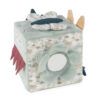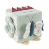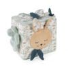 Cubo de actividades blando con conejito en rosa para estimular al bebé durante el juego. Para tocar y descubrir diferentes tactos y sonidos. También tiene un espejo para el autodescubrimiento.