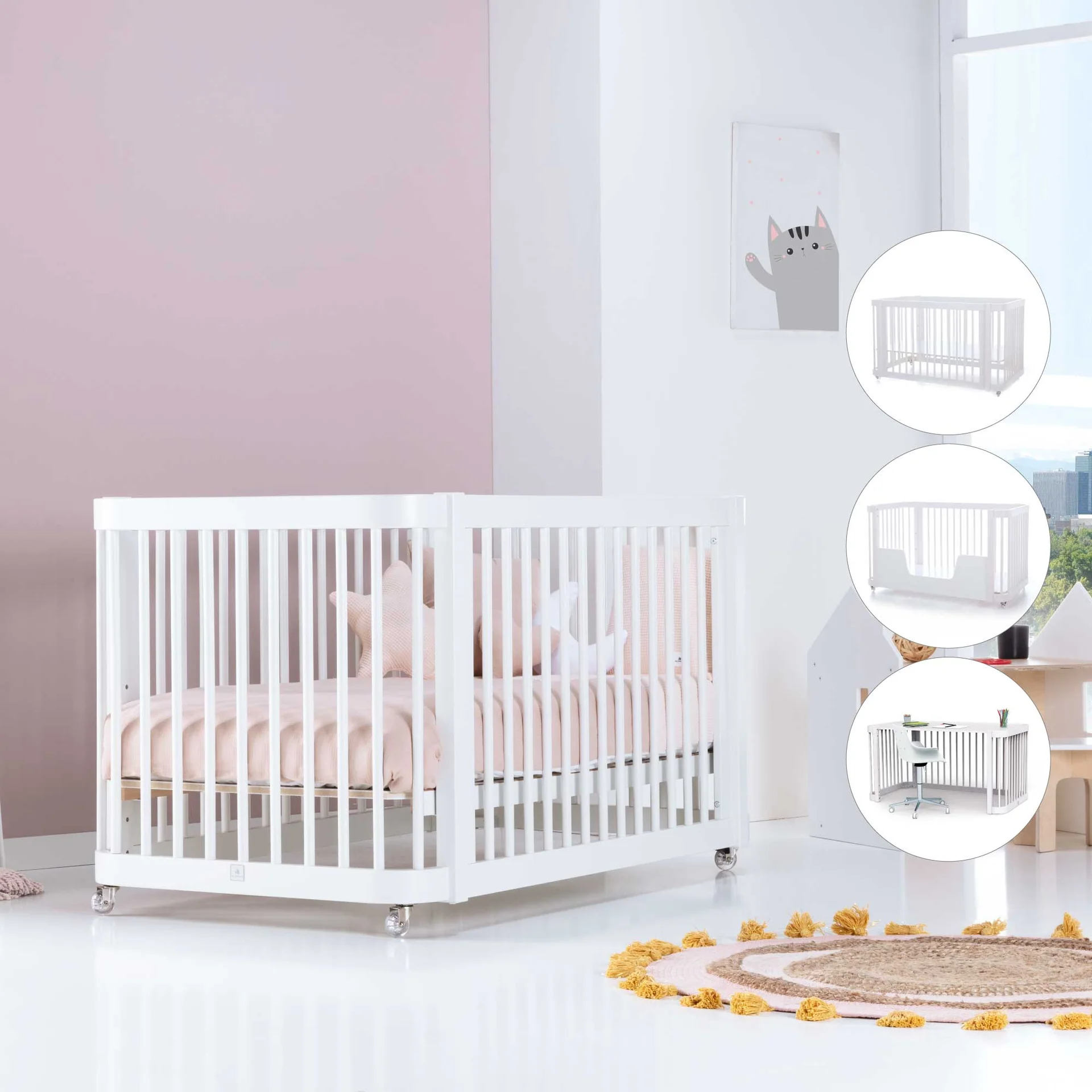 Enamórate de cada detalle de la cuna transformable en cama 70×140 cm CREA DUE Bianco. De líneas sencillas y estilo atemporal, será perfecta para dar calidez a cualquier estancia de la casa gracias a las tonalidades que incorpora. Es una cuna con ruedas convertible 3en1. De cuna 70×140 cm se puede transformar en cuna de colecho, para practicar colecho (opcional), en camita Montessori o en escritorio infantil. ¡Una opción supercompleta! Además, puedes vestirla como más te guste con los coordinados textiles disponibles.