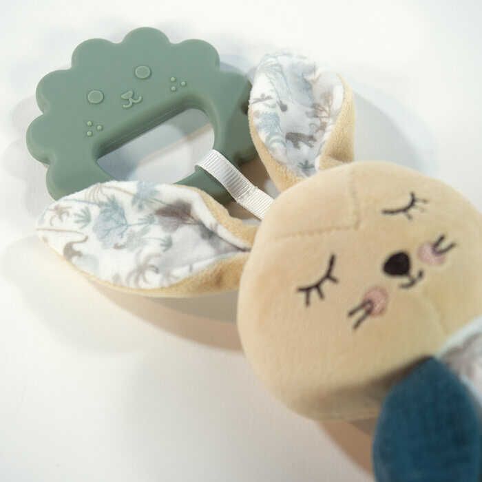 Este peluche, con un tacto muy agradable y suave, será el compañero ideal de tu bebé, tanto para irse a dormir con su compañía cómo en la etapa de dentición.