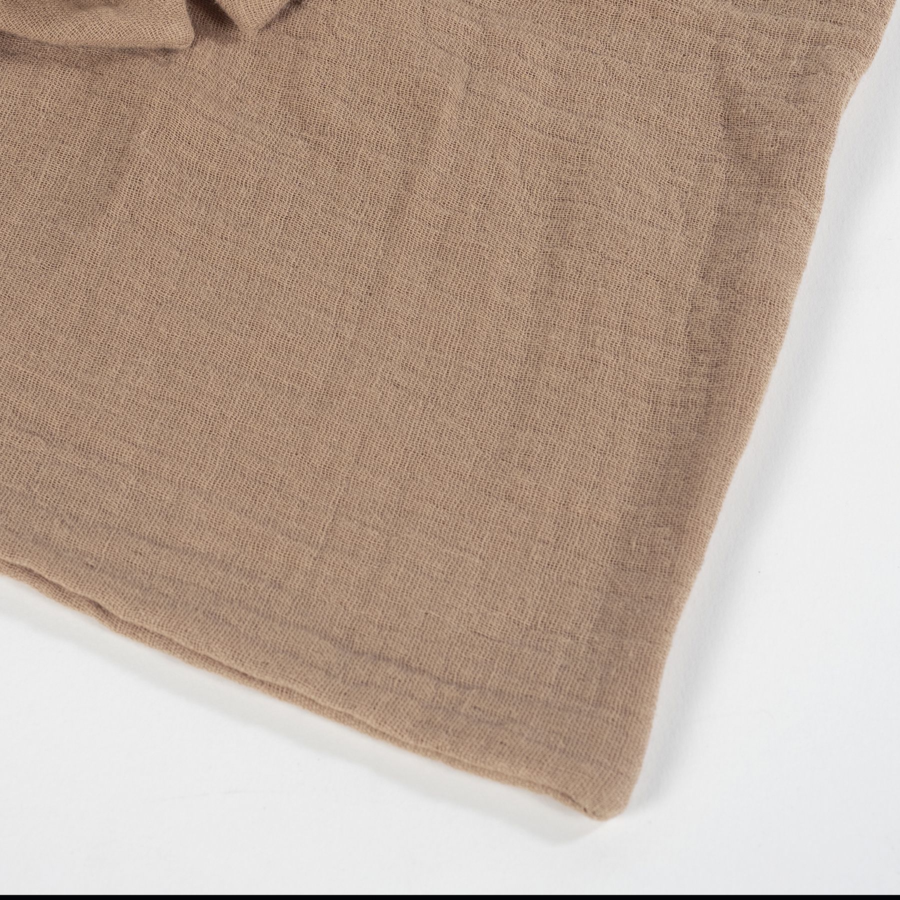 Doudou ratoncito en bambula color canela. Ayuda a relajar al bebé al tocarlo.
