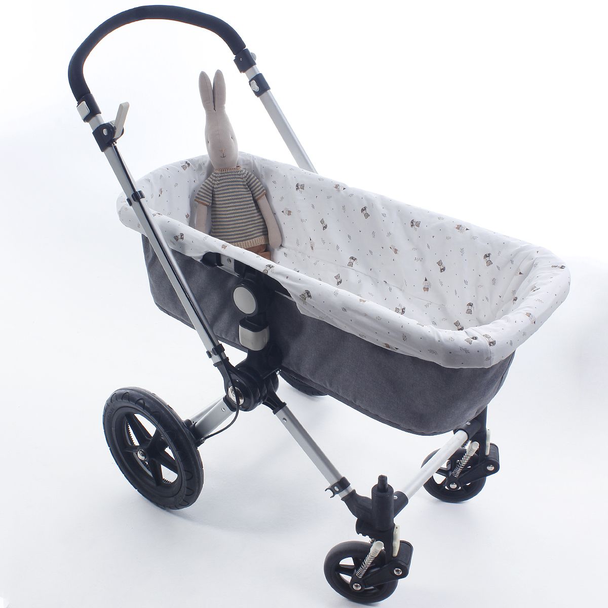 Cubre el interior de tu capazo con esta garnitura adaptable según tu carrito para dar un aire sofisticado al paseo de tu bebe.