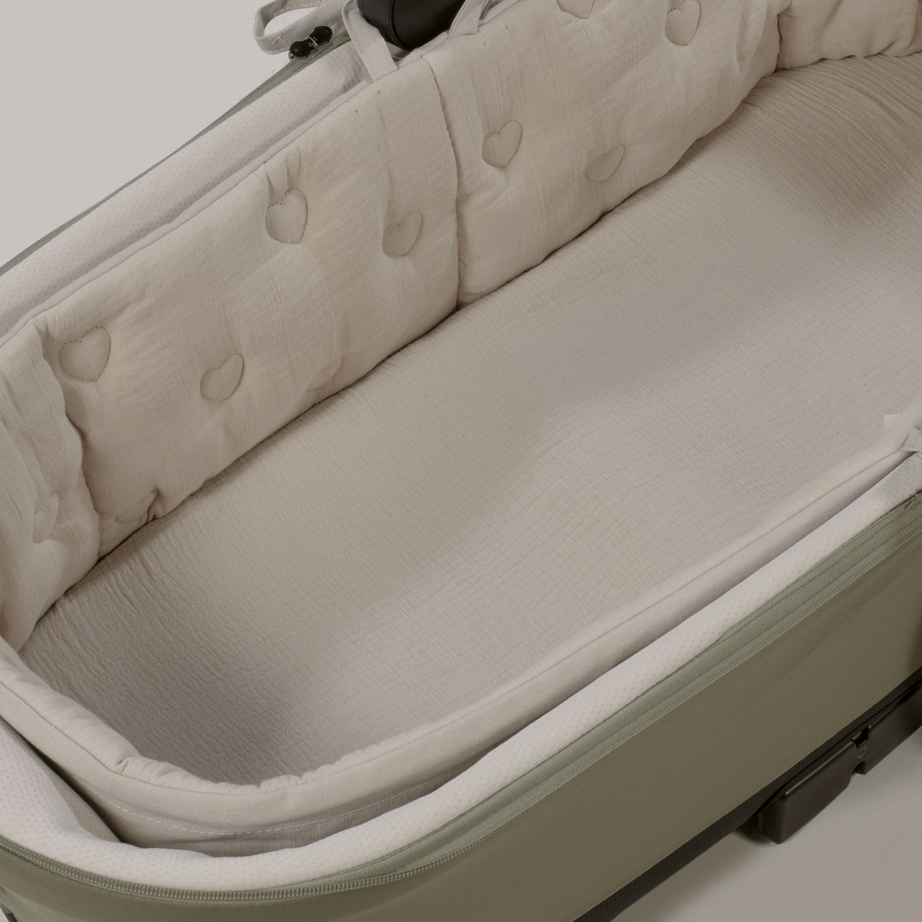 El cubre cuco con varillas y sábana bajera ajustable Sintra beige con corazones bordados es el complemento perfecto para aportar suavidad y elegancia al capazo de tu bebé. Fabricado en muselina de algodón 100%, garantiza un tacto delicado y transpirable, ideal para la piel sensible del recién nacido. El cubre capazo con varillas se ajusta perfectamente al interior del capazo. Su diseño ajustable con lazos garantiza una perfecta adaptación al cuco proporcionando un acabado envolvente y seguro con un diseño encantador de estampado de flores en tonos neutros. La sábana bajera ajustable, confeccionada en muselina de algodón 100%, ofrece una suavidad excepcional y transpirabilidad óptima, asegurando el confort del bebé en todo momento. Compatible con la mayoría de los capazos. Este conjunto es ideal para mantener a tu bebé cómodo y protegido.