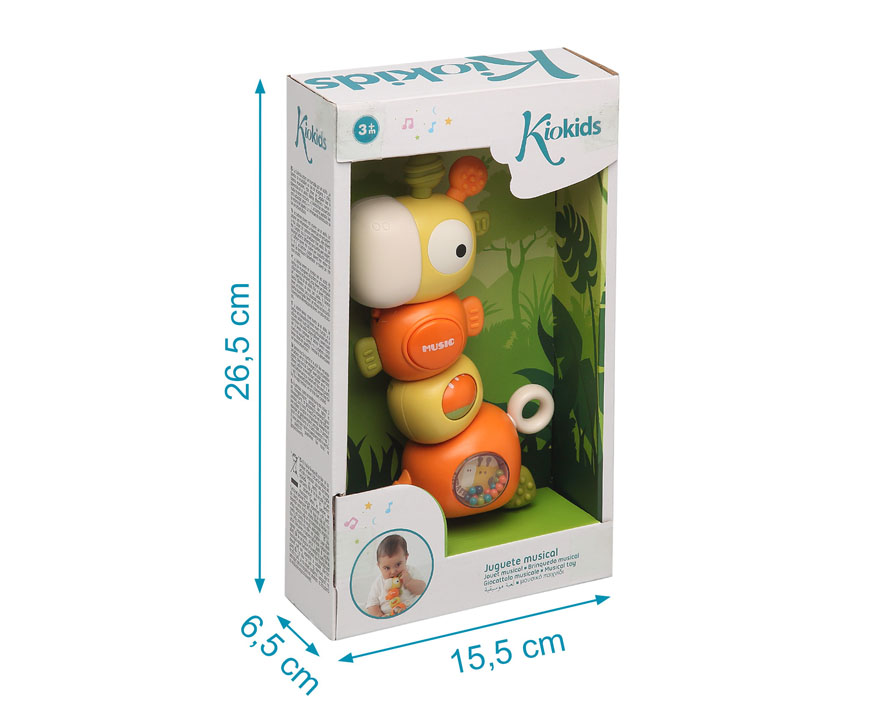Estimula el desarrollo de tu bebé con la jirafa musical de Kiokids, el juguete interactivo multifuncional que ofrece una experiencia sensorial completa.