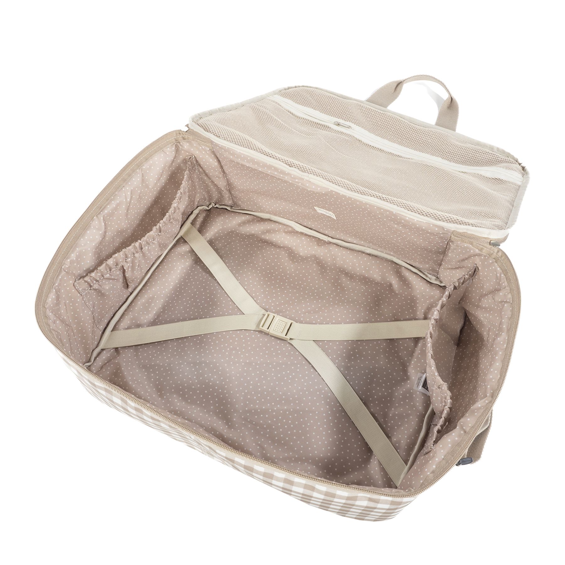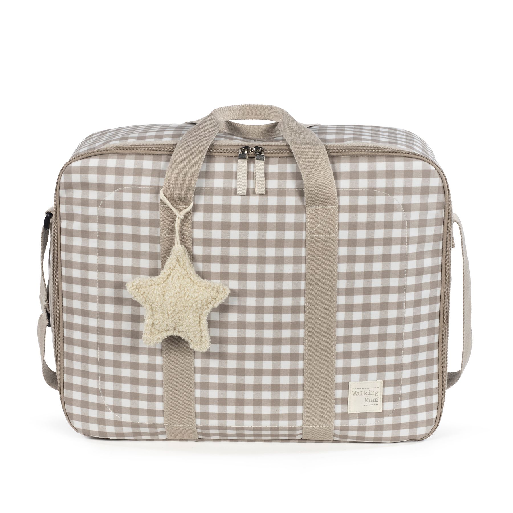 La maleta de bebé Caetana Sand de cuadros beige es un bolso especialmente diseñado para el momento más importante del embarazo, que es la llegada de tu bebé, momento en el que hay un montón de cosas que preparar. Por esto necesitas un espacio cómodo para transportar todo lo necesario para ti, el padre y el niño. Esta maleta de bebé es el modelo perfecto para cubrir todo lo que no puede faltar en este día tan especial. Es cómoda, ligera y manejable con dimensiones rectangulares y apertura práctica para tener todas tus necesidades cubiertas.