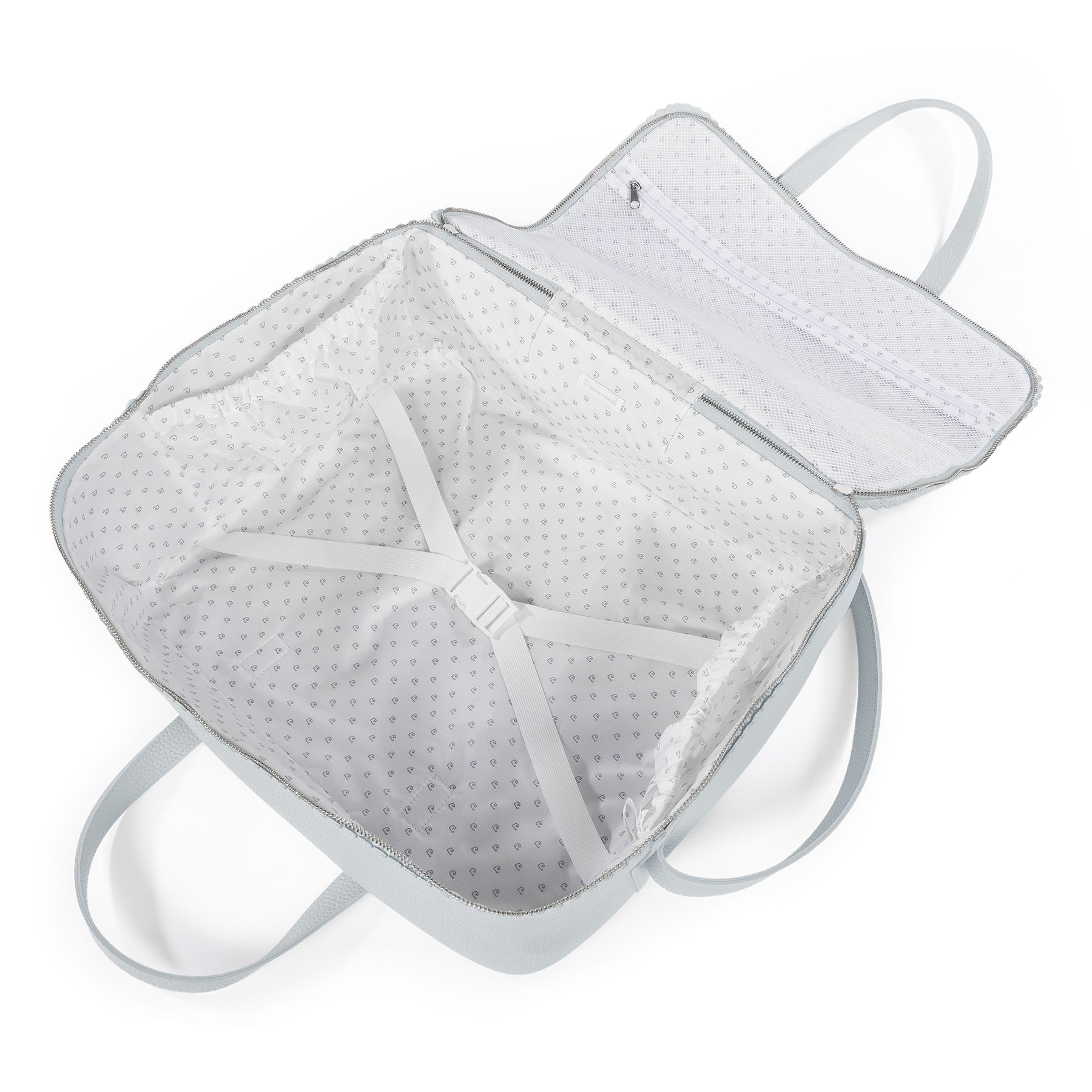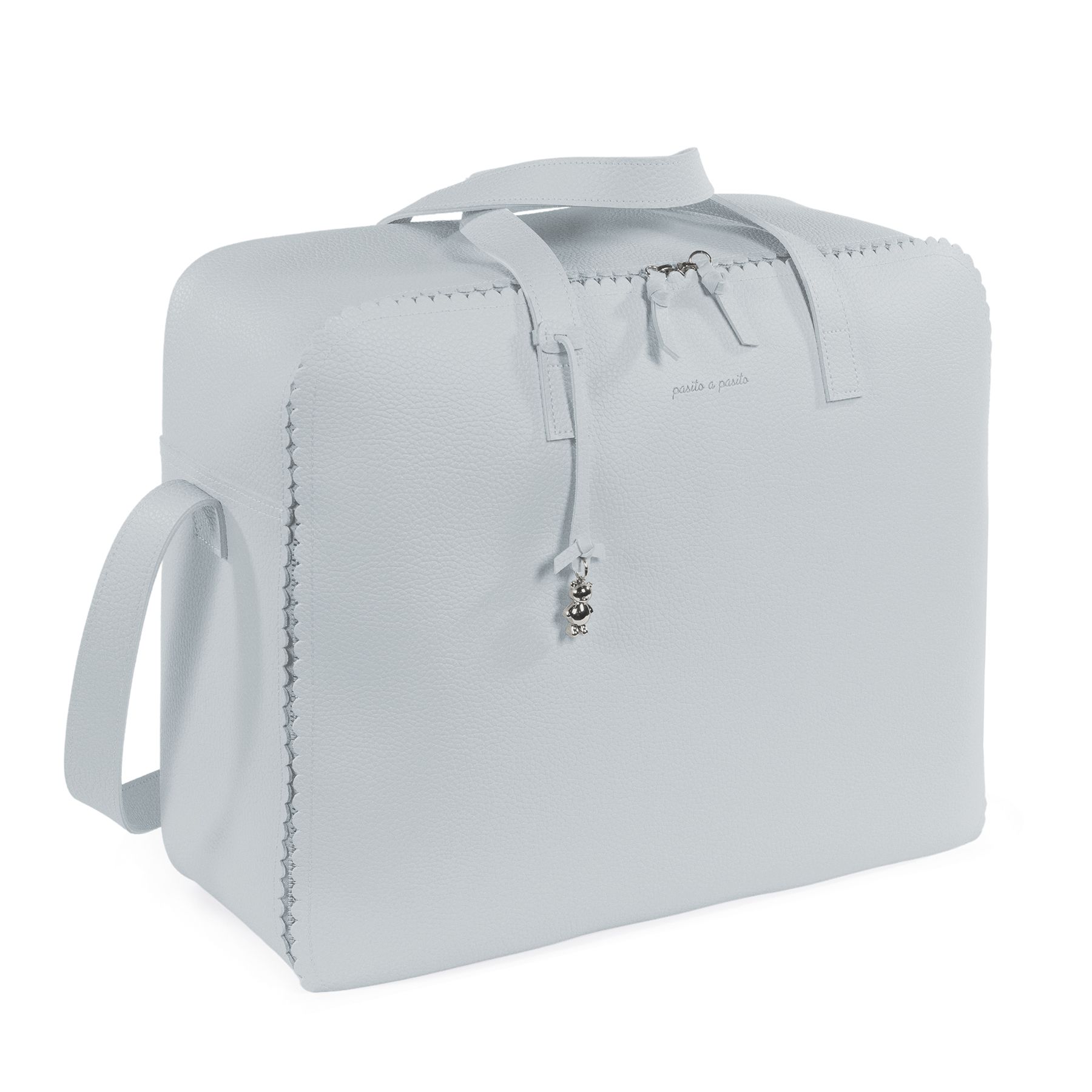 La maleta de bebé Icon Sky de Pasito a pasito es la bolsa perfecta para el hospital/clínica, un modelo único con mucho estilo especialmente pensada para que puedas llevar todo lo que necesitas para ti, el papá y el bebé. Está elaborada en resistente y suave polipiel. Su forma rectangular que brinda comodidad para tener cubiertas todas tus necesidades (mudas o accesorios) durante el día del nacimiento del bebé. Es un diseño simple, moderno y práctico que ofrece gran capacidad para llevar muchas cosas y es de práctica apertura para facilitar la búsqueda de lo que sea que hayas guardado. Viene acondicionada con un asa larga para colgar en el hombro y y dos asas cortas para llevar en la mano si lo prefieres. La maleta de hospital cuenta con un forro interior con gomas para sujetar la ropita y se cierra de forma segura con cremallera de dos lados que permiten abrir la tapa completamente.