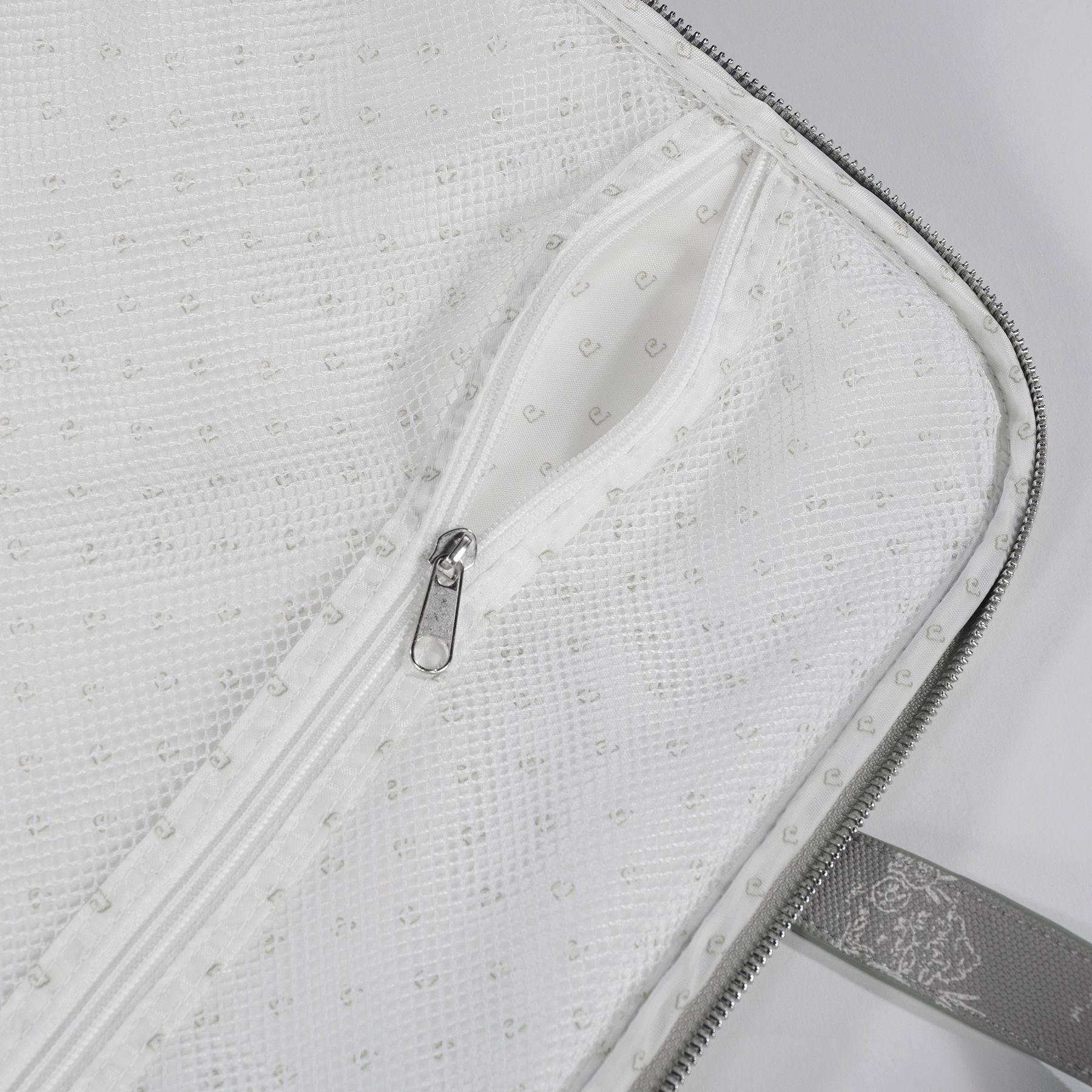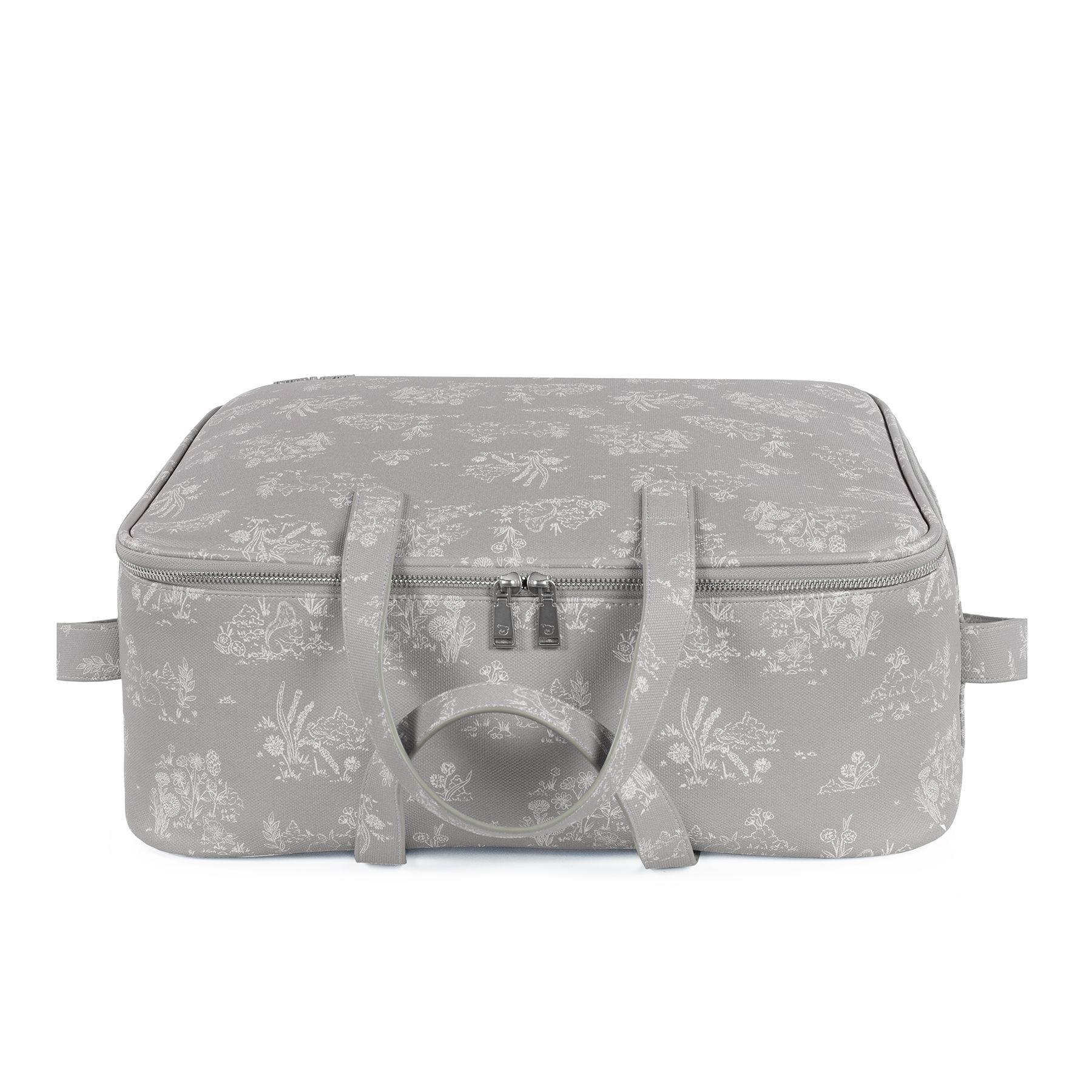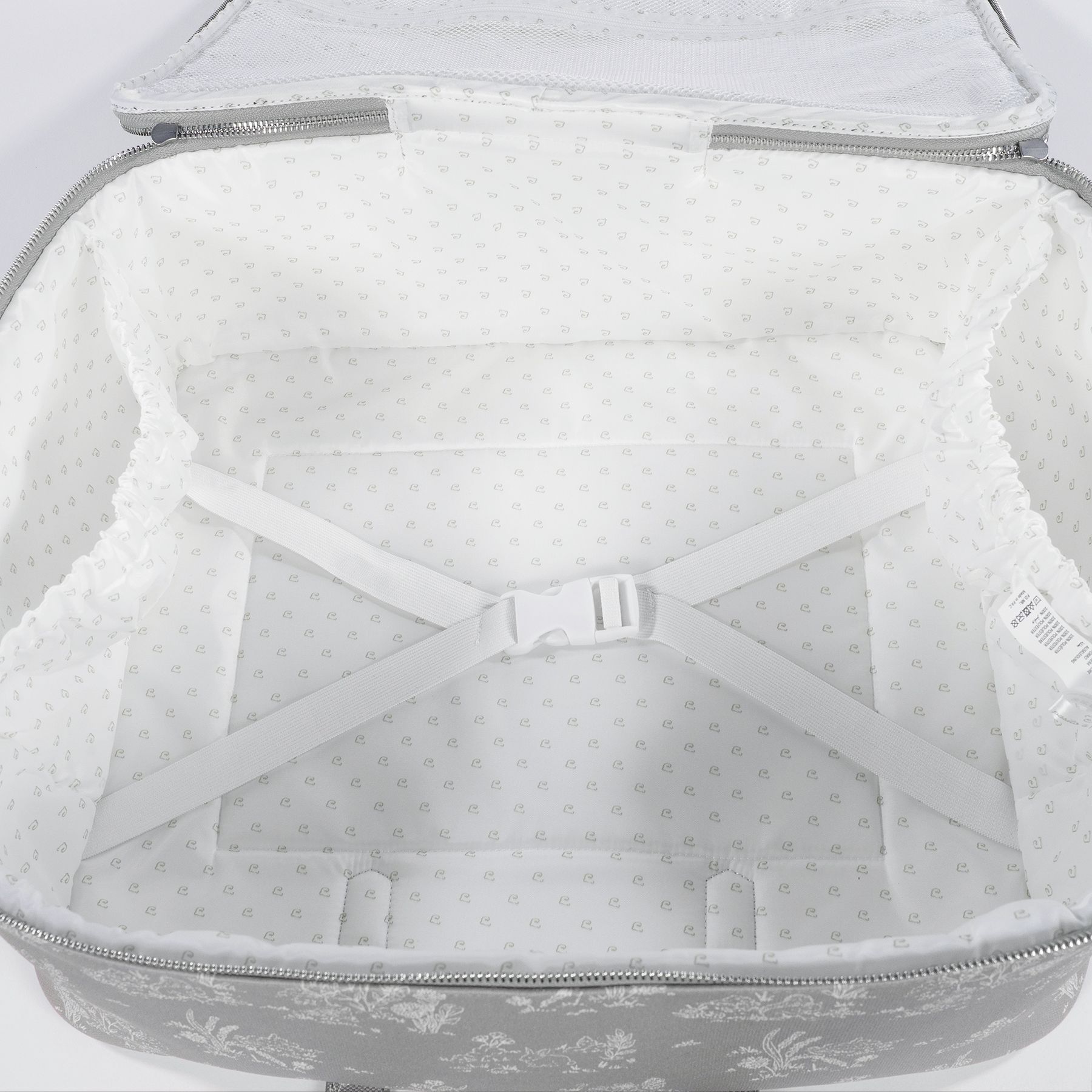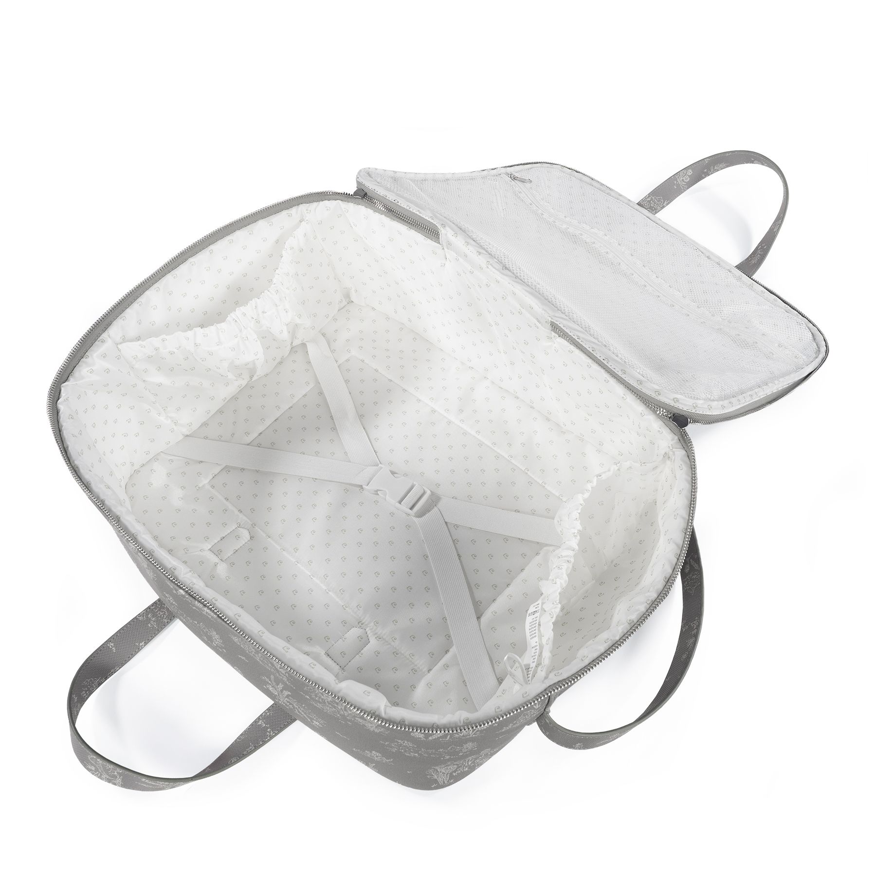 La maleta de bebé Toile de Jouy es la bolsa perfecta para el hospital/clínica, un modelo único con mucho estilo especialmente pensada para que puedas llevar todo lo que necesitas para ti, el papá y el bebé. Está elaborada en resistente y suave polipiel impresa en crema. Su forma rectangular que brinda comodidad para tener cubiertas todas tus necesidades (mudas o accesorios) durante el día del nacimiento del bebé. Es un diseño simple, moderno y práctico que ofrece gran capacidad para llevar muchas cosas y es de práctica apertura para facilitar la búsqueda de lo que sea que hayas guardado.