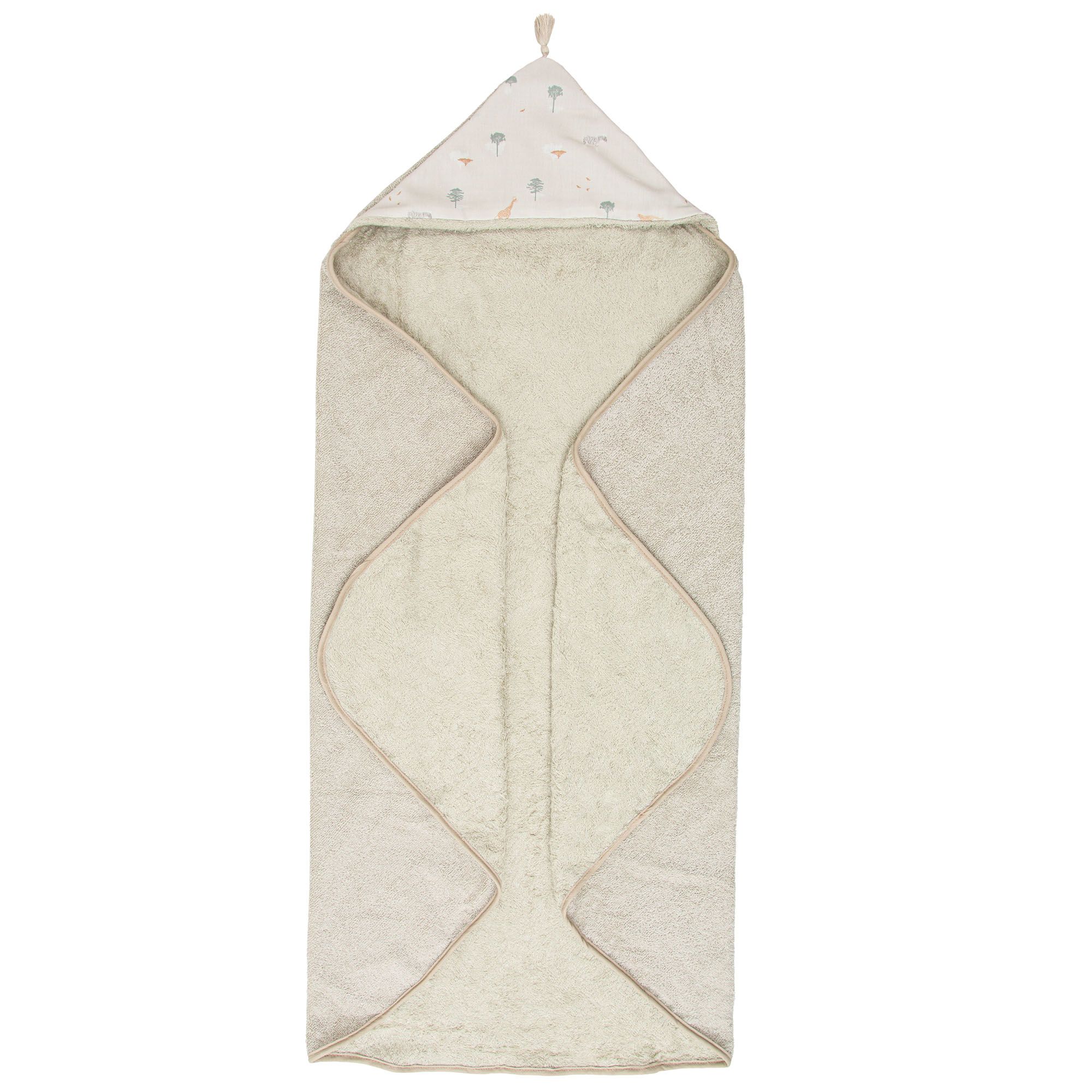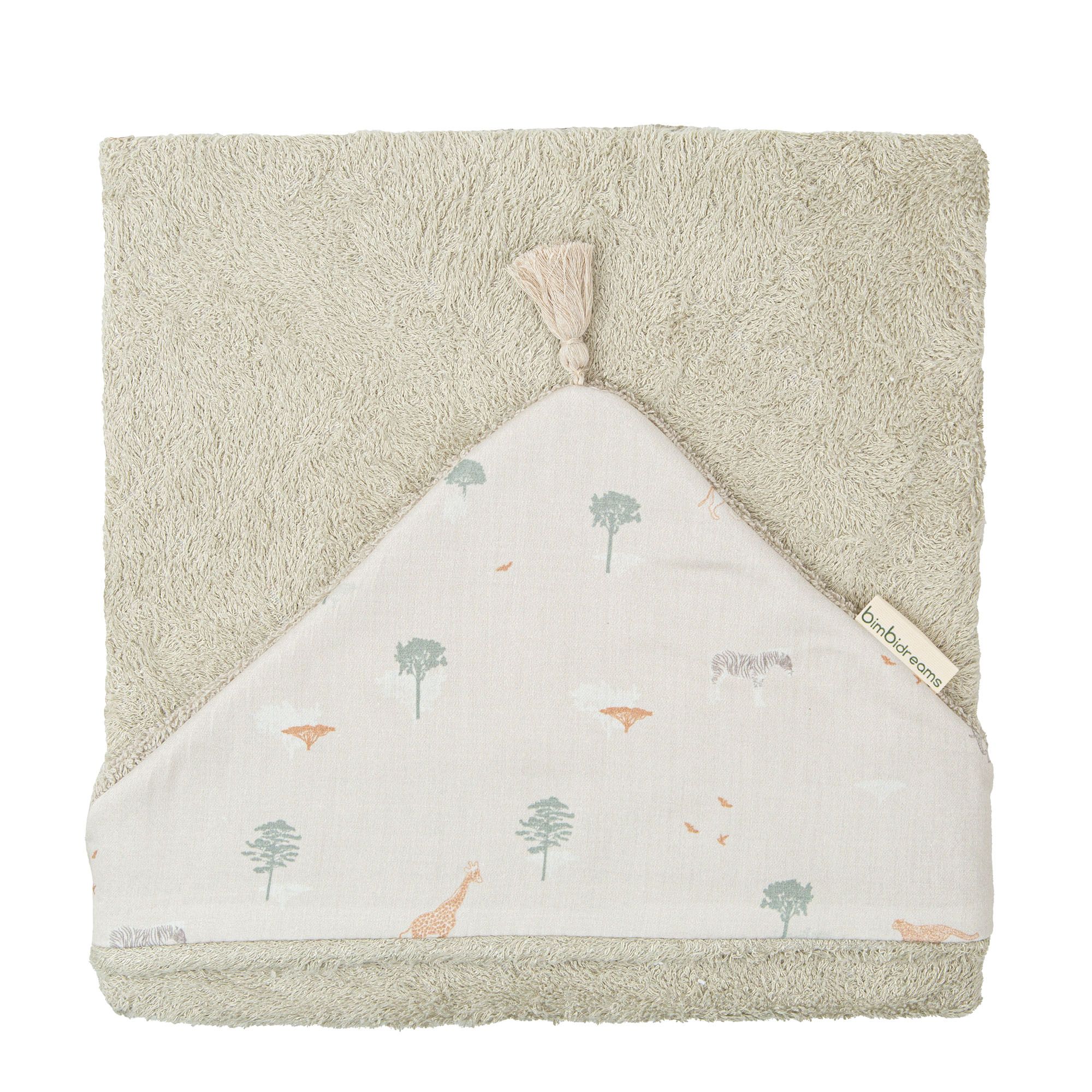 La capa de baño de la colección Nairobi de Bimbidreams es un accesorio imprescindible para el cuidado del bebé, combinando funcionalidad y diseño encantador. Fabricada en algodón y bambu, es extremadamente suave y absorbente, ideal para secar y proteger la delicada piel del bebé tras el baño. La capucha incorpora en tono verde musgo, con un encantador estampado de jirafas, leones y árboles, forma parte de la colección Nairobi, una línea de inspiración salvaje y natural, con un estilo tierno, unisex y moderno.