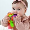 Puede que el niño babee más y quieran morder objetos, y seguramente resultará molesto y el niño estará más irritable. Para aliviar estos síntomas, debemos dar al bebé algo para morder.