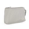 El neceser de bebé Botton con estampado de rayas es un bolso especialmente pensado para llevar todos los productos de aseo de nuestra niña o niño al salir de casa. Es un modelo con mucho estilo para adecuarse a lo que necesitas. Su diseño simple y cómodo de forma rectangular ofrece comodidad para transportar todos los artículos de aseo de tu bebé que por ser tan pequeños a veces se pierden dentro del bolso canastilla y aquí puedes tenerlos todos ordenados y siempre a mano. Tiene un cierre seguro de cremallera para evitar que algo pueda salirse.