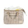 El neceser de bebé Caetana Sand de cuadros beige es un bolso especialmente pensado para llevar todos los productos de aseo de nuestra niña o niño al salir de casa. Es un modelo diferente y moderno con mucho estilo para adecuarse a lo que necesitas. Su diseño simple y cómodo de forma rectangular ofrece comodidad gracias a su distribución con varios compartimentos para transportar todos los artículos de aseo de tu bebé que por ser tan pequeños a veces se pierden dentro del bolso canastilla y aquí puedes tenerlos todos ordenados y siempre a mano. Cuenta con asas ubicadas en la parte superior para cargar el bolso y tiene un cierre seguro de cremallera para evitar que algo pueda salirse.
