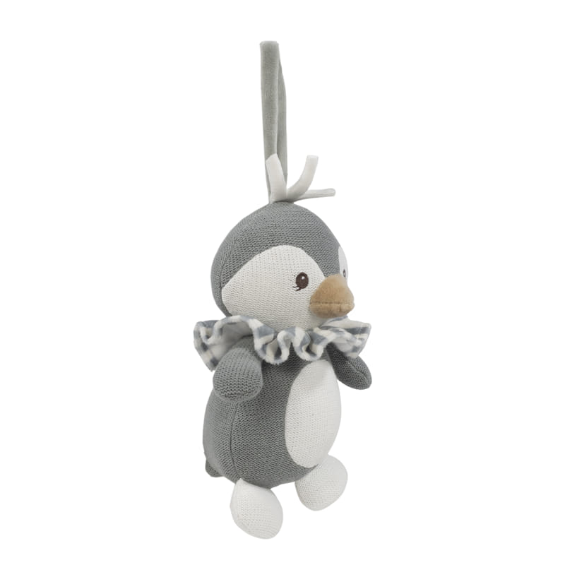 El musical Pingüino Praliné Matcha de Walking Mum es el accesorio ideal para relajar y calmar a tu bebé. Diseñado con un adorable pingüino de 25 cm, su suave melodía crea un ambiente de tranquilidad y confort. Perfecto para ayudar a dormir al bebé. Incluye un práctico lazo para sujetarlo en la cuna, el cochecito o la silla de paseo. Confeccionado en tricot ideal para el tacto delicado del bebé.