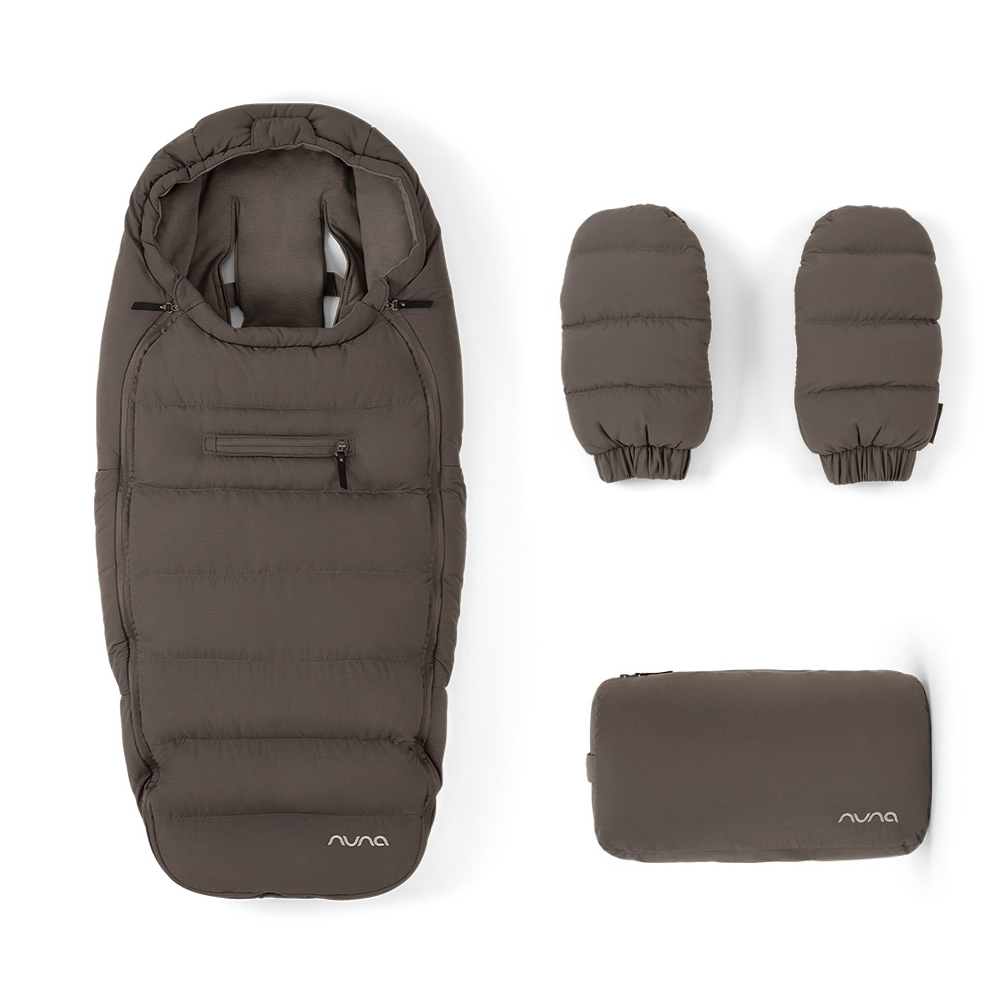 El set de invierno para silla de paseo es un accesorio imprescindible que se adapta a todas las sillas de paseo Nuna e incluye un saco ultrasuave para bebé y unas manoplas a juego para ti.