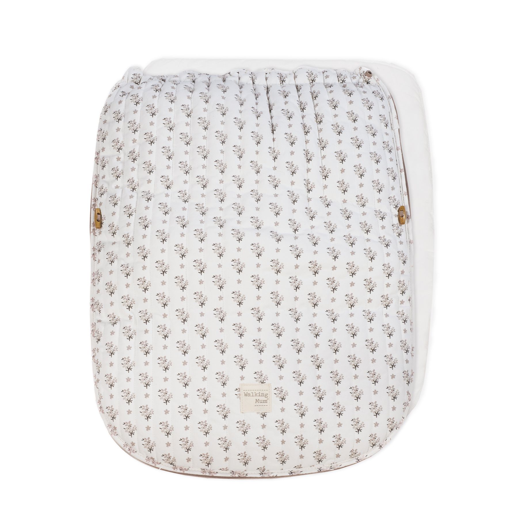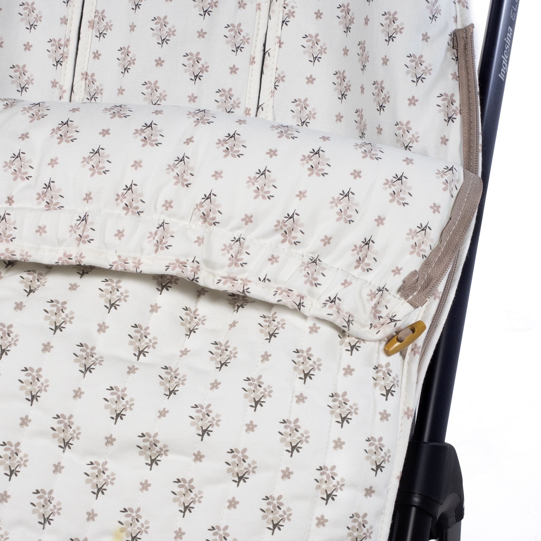 La funda de silla para bebé Botton con estampado floral está fabricado con un tejido de 100% algodón. Es la funda ideal para cubrir la base de la silla de paseo y viene provista de saco para arropar a tu bebé. Con este saco tu bebé estará cómodo durante los meses de primavera y de otoño. Trasera con material anti-sudoración que evita la sudoración excesiva del bebe. Relleno extraíble.