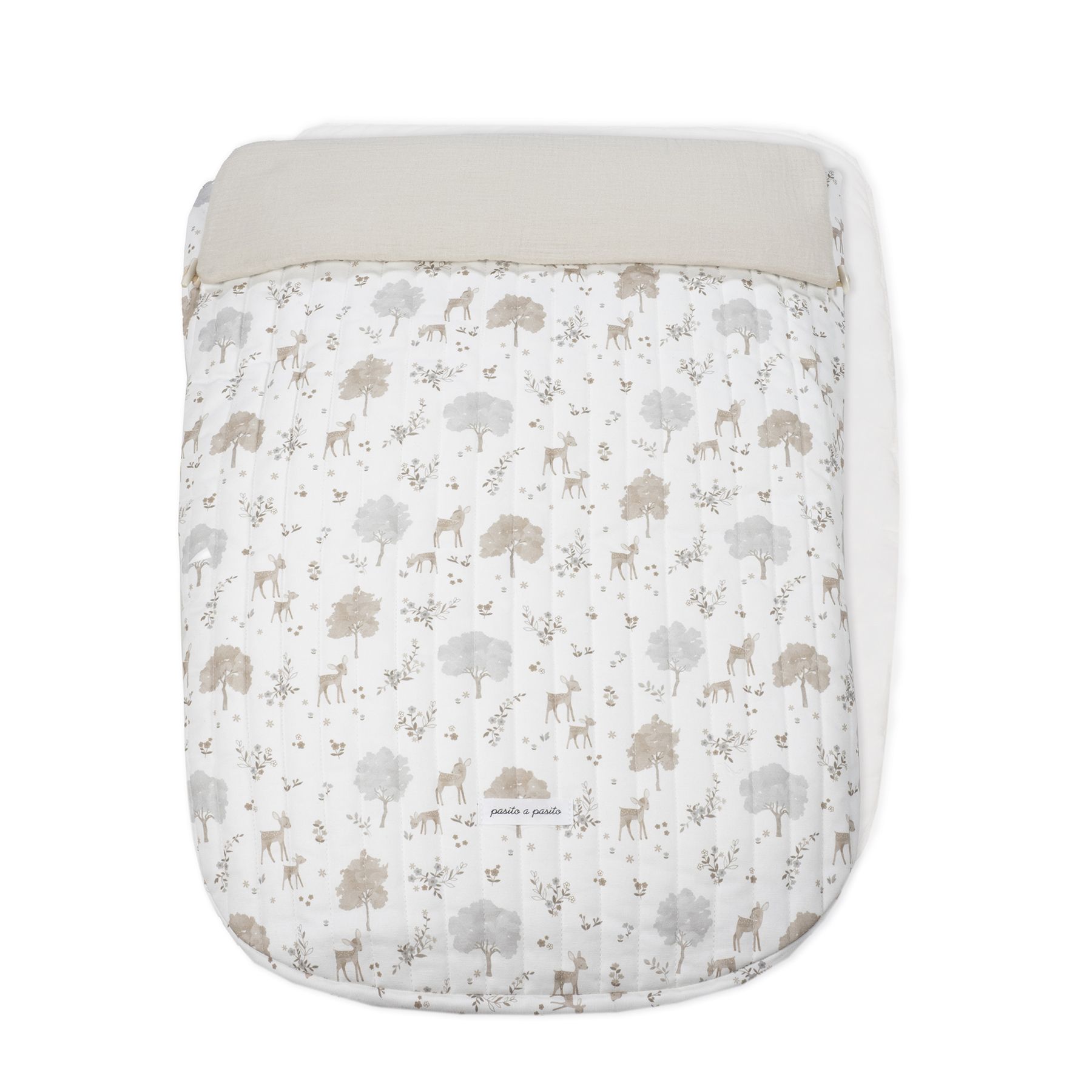 Funda Nara de Pasito a pasito en tejido de algodón y bambula muy suave ideal para cubrir la silla de paseo provista de saco. Está diseñado en el respaldar con una capa de tejido en material transpirable que aísla la humedad y evita la sudoración excesiva del bebe haciendo el paseo más confortable. Relleno de fibra hueca extraíble. Reposapiés de poliéster para facilitar la limpieza. Dispone de varias aperturas (ojales) y ajustes para adaptarla a la mayoría de la sillitas de paseo, convirtiendo el paseo de tu bebé seguro y confortable. Es un diseño bonito, simple y cómodo que crea un nido para tu bebé manteniéndolo arropado y protegido en días de brisa. El saco se adapta sin problemas a cualquier coche para darle la comodidad que necesita.
