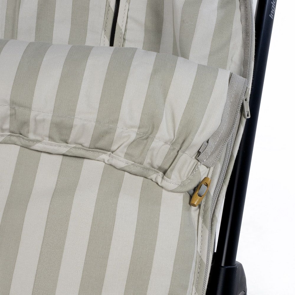 La funda de silla para bebé Sintra verde con estampado de rayas está fabricado con un tejido de 100% algodón. Es la funda ideal para cubrir la base de la silla de paseo y viene provista de saco para arropar a tu bebé. Con este saco tu bebé estará cómodo durante los meses de primavera y de otoño. Trasera con material anti-sudoración que evita la sudoración excesiva del bebe. Relleno extraíble.