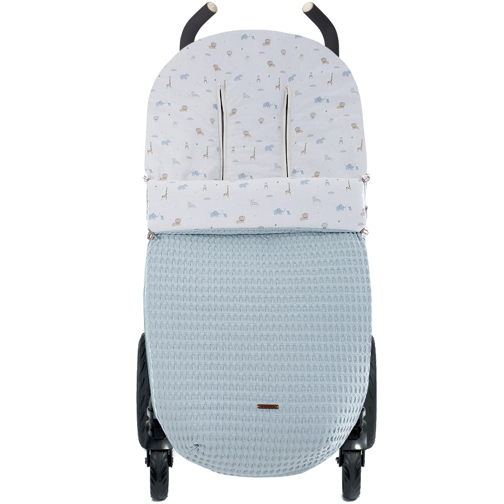 Confortable saco de silla, ideal para salir con tu bebé y disfrutar de un agradable paseo, gracias al suave tejido con el que está fabricado. Sienta y se adapta perfectamente bien en la práctica totalidad de las marcas de sillas de paseo del mercado. Dispone de práctica apertura total, gracias a sus 2 cremalleras laterales con las que podrás acceder rápidamente a tu pequé, teniendo la posibilidad de quitar completamente la encimera del saco, dejándolo así solo con la parte de la espalda. En dicha espalda, dispone de ojales para adaptarlo al paso del arnés de la mayoría de las sillas de paseo del mercado.