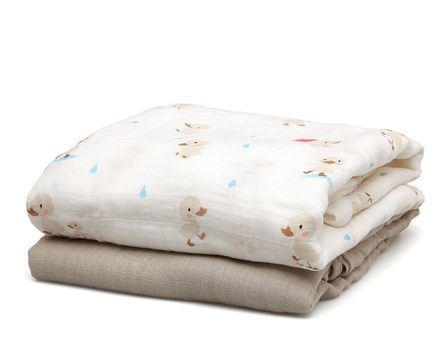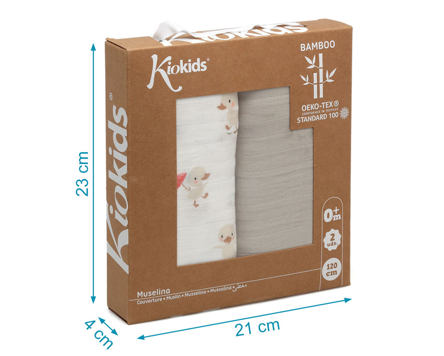 Set 2 Muselinas Bambú Patitos Beige Kiokids