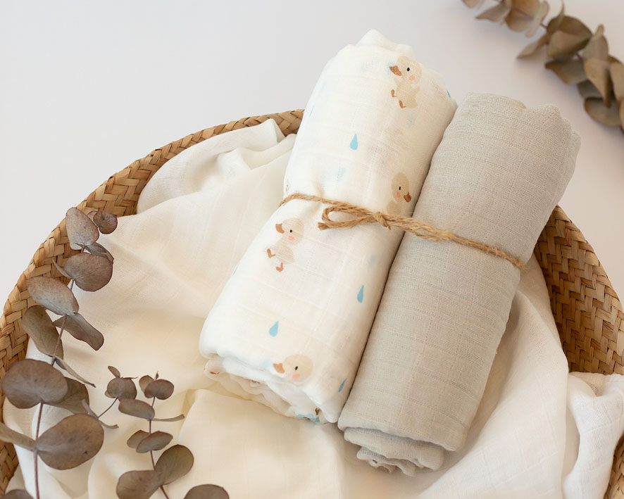 En concreto, para la fabricación de nuestras muselinas utilizamos una mezcla de 70% de bambú y 30% de algodón para conseguir numerosos beneficios de la conjunción de estos materiales.