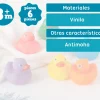 Set de 6 patitos coloridos y blanditos en vinilo para jugar dentro y fuera del baño.