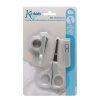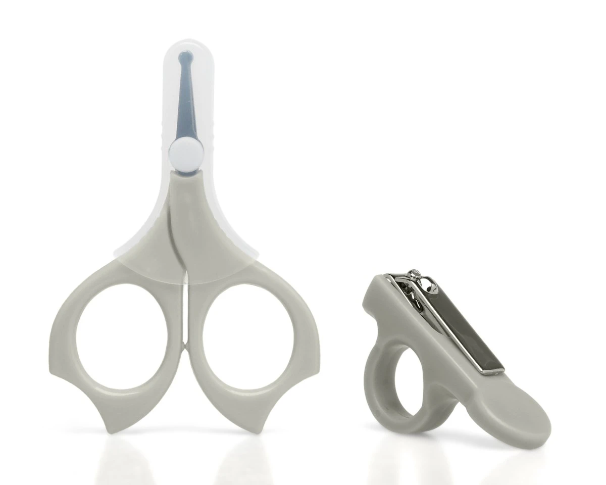 Este práctico set para la manicura infantil incluye tijeras con la punta redondeada, para un manejo más seguro, (y capucha de protección para poder llevar en el bolso) y cortaúñas.
