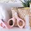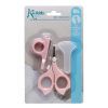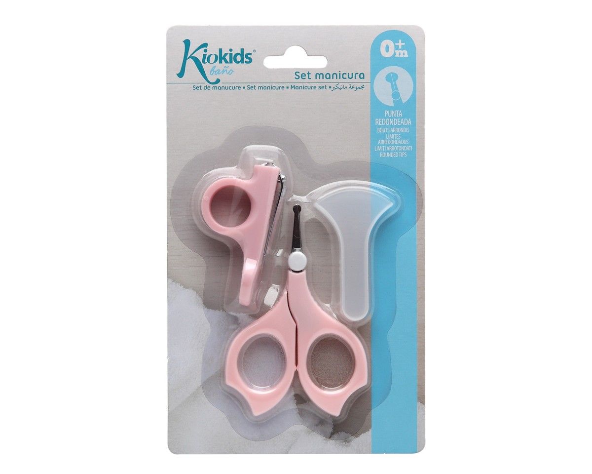 Este práctico set para la manicura infantil incluye tijeras con la punta redondeada, para un manejo más seguro, (y capucha de protección para poder llevar en el bolso) y cortaúñas.