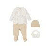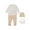 El Set de Nacimiento Ciel de Bimbidreams (talla 0-1 mes) incluye 4 piezas esenciales para los primeros días del bebé: jubón, polaina, gorrito y babero, diseñados para comodidad y estilo. Este precioso set está realizado en suave tejido de algodón orgánico y bambu, y se presenta en una bonita caja para regalar, perfecta para baby showers o visitas al hospital.