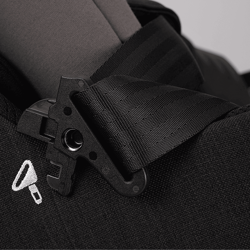- Los soportes de hebilla magnéticos mantienen las correas apartadas al abrochar al bebé