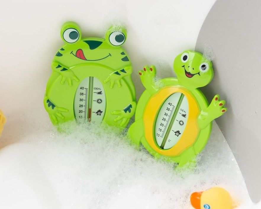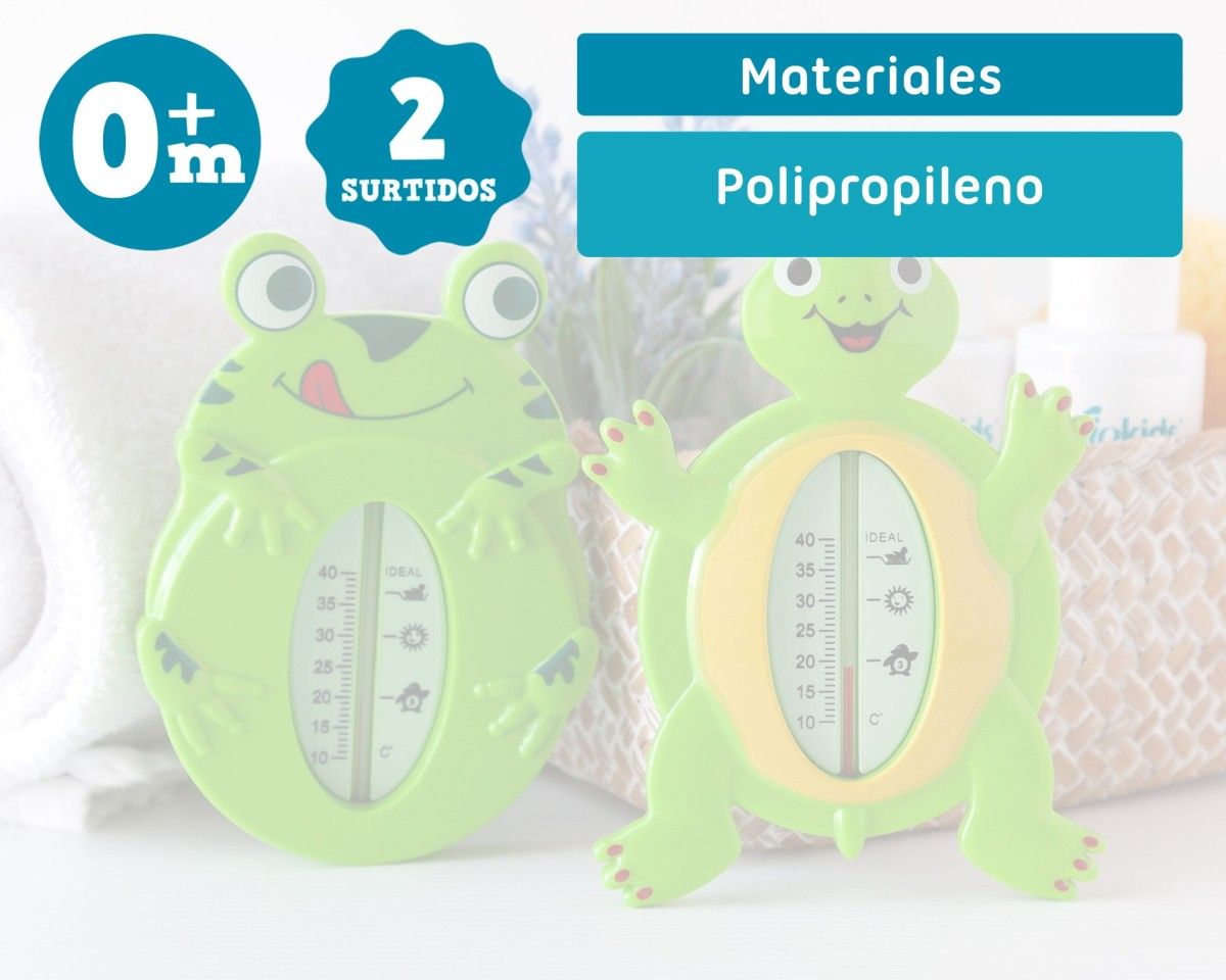 Termómetro de baño con forma de ranita o tortuga. Indica la temperatura idónea para el agua del baño de bebés y niños.
