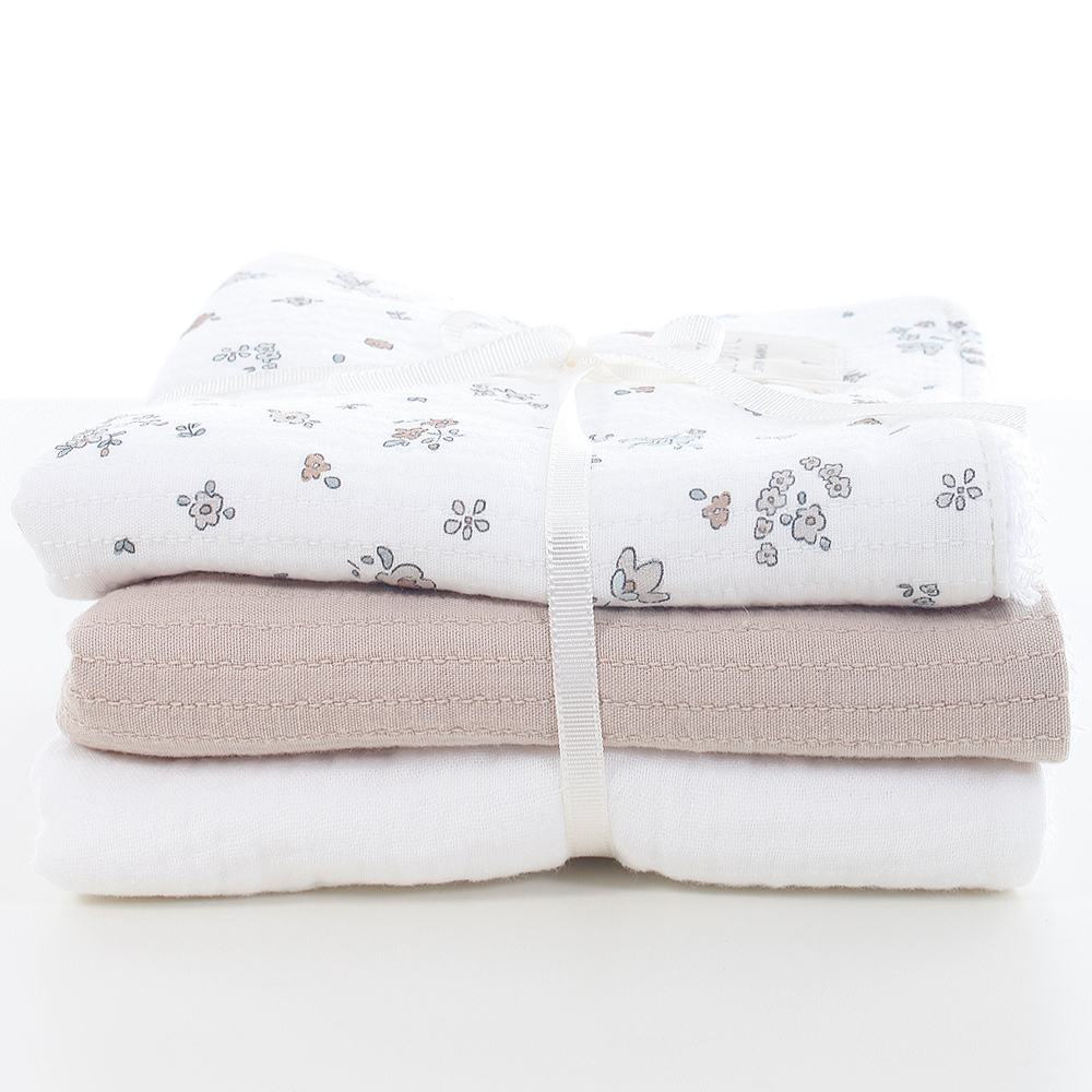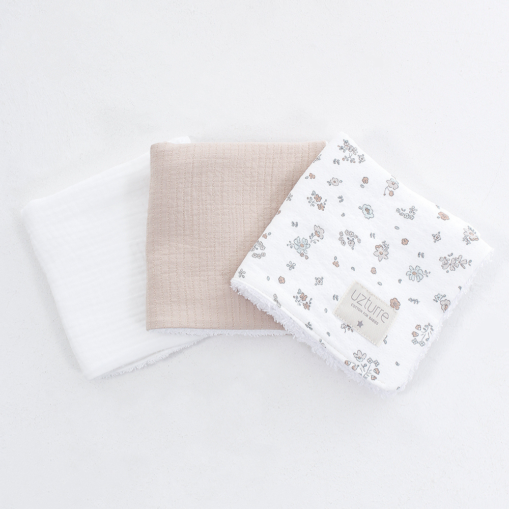 Pack de 3 salva-babitas 100% algodón (28×28 cm), un imprescindible en la canastilla del bebé para usar en casa o de paseo. Son suaves, absorbentes, fáciles de lavar y muy versátiles: protegen durante regurgitaciones, absorben el sudor y evitan que la ropa y el entorno se manchen. Perfectos para el capazo, cuna, minicuna o nido, así como durante la alimentación. También puedes colocarlos en tu hombro para proteger tu ropa al sacar los gases o secar sus babitas. Confeccionados en tejido suave y rizo de toalla 100% algodón orgánico y anti-enganches.
