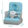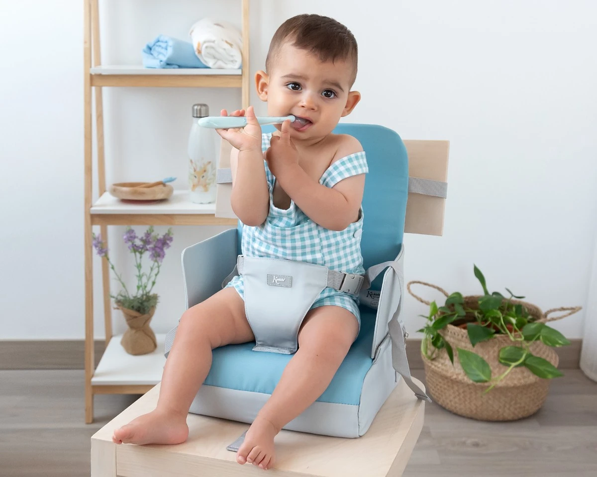 Nuestra trona de viaje para bebés es un accesorio imprescindible para los padres, ya que ofrece la posibilidad de alimentar al bebé en cualquier lugar de manera segura y cómoda. Está diseñada para plegarse de forma compacta lo que la hace ideal para usarla en viajes, restaurantes o excursiones familiares. Se puede montar rápidamente en cualquier silla estándar, proporcionando un asiento seguro para el bebé.